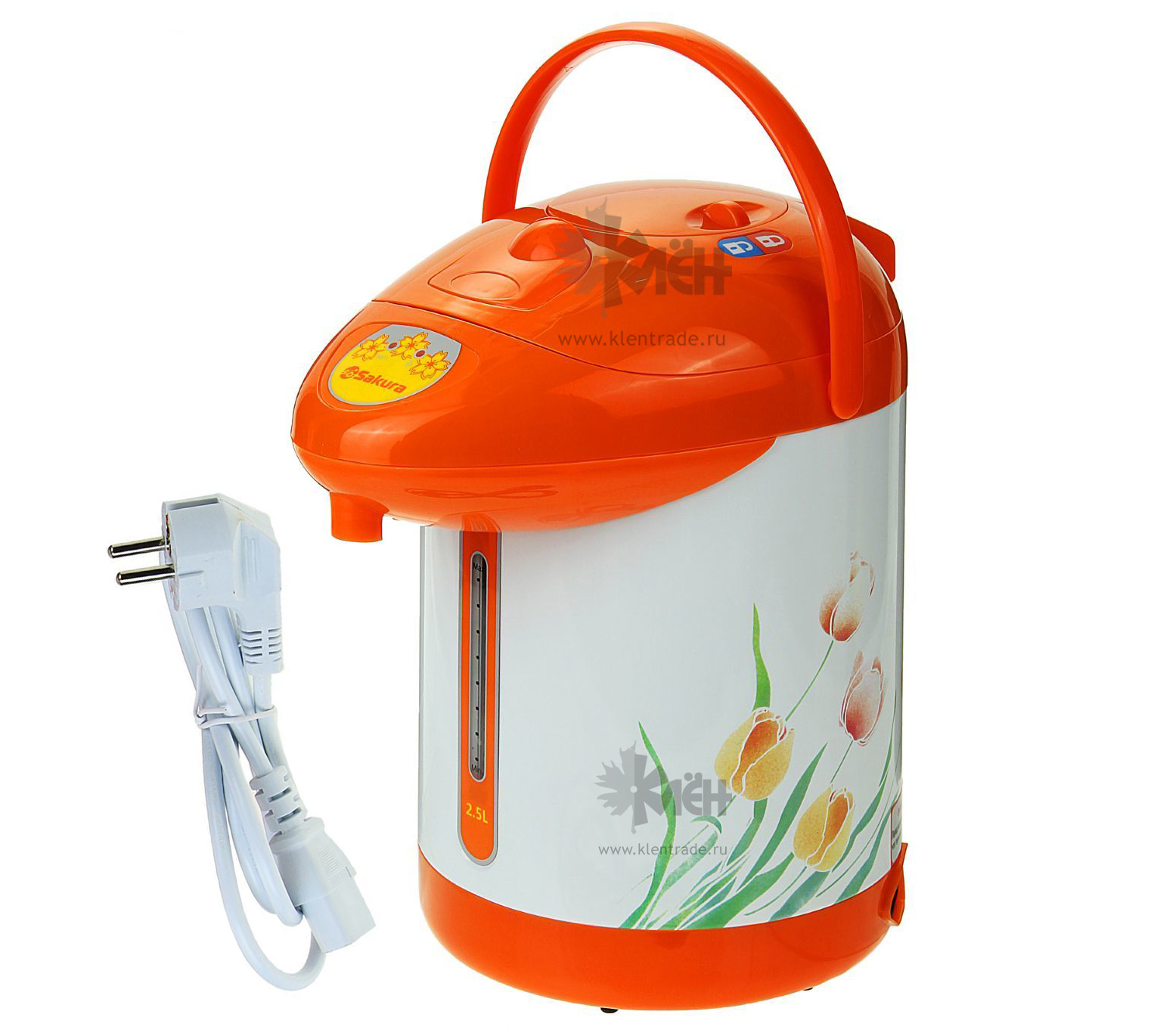Термопот SAKURA SA-362 WY это кухонный прибор успешно сочетающий в себе функции чайника, термоса и кулера. Как и чайник, он нагревает воду, как термос, может поддерживать её температуру на заданном пользователем уровне. Конструкция термоса включает в себя полностью стальной корпус. Нержавеющая сталь корпуса не подвержена коррозии и сохраняет природный вкус чистой воды. Прибор выполнен в белоснежно-оранжевом цвете, имеет уникальный цветочный рисунок.