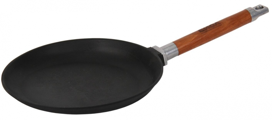 Сковорода чугунная блинная d22см. Камская БЛ220 деревянн.ручка