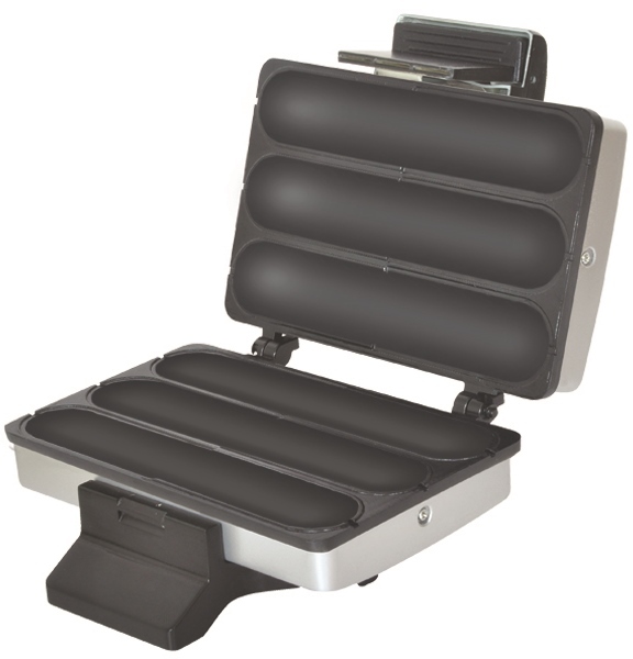 на 3 больших или 6 маленьких сосисок высокая мощность 1000 Вт размер формы 20,5 x 3,8 см. прочных стальной корпус регулировка температуры надежное запорное устройство