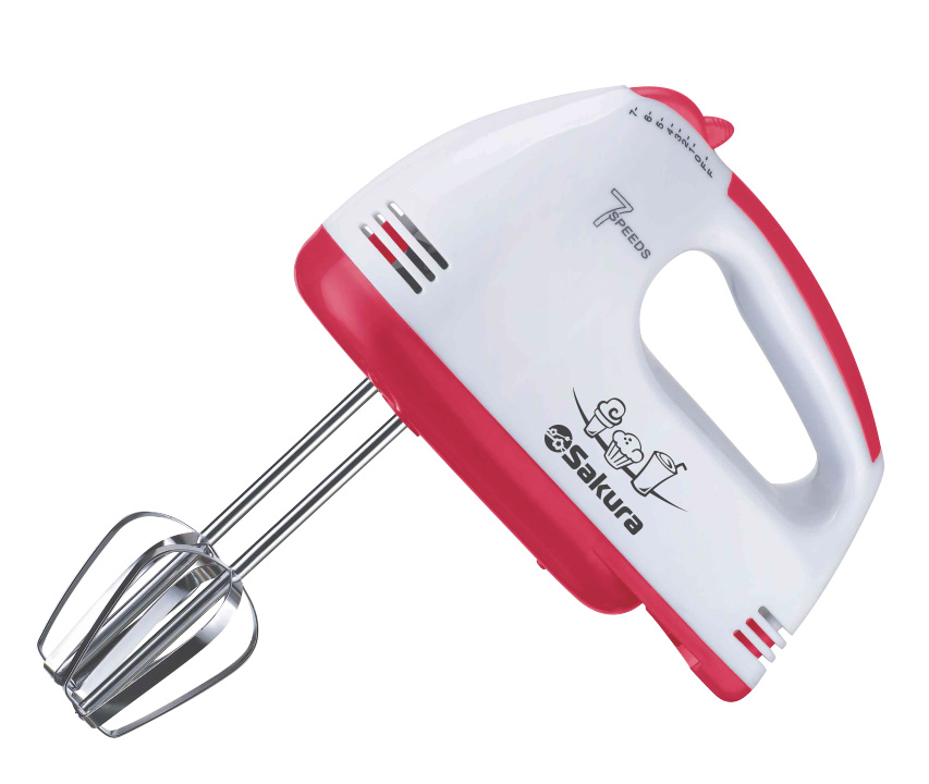 Миксер SAKURA SA-6313 R легкий и компактный в хранении. Прибор имеет два варианта насадок.