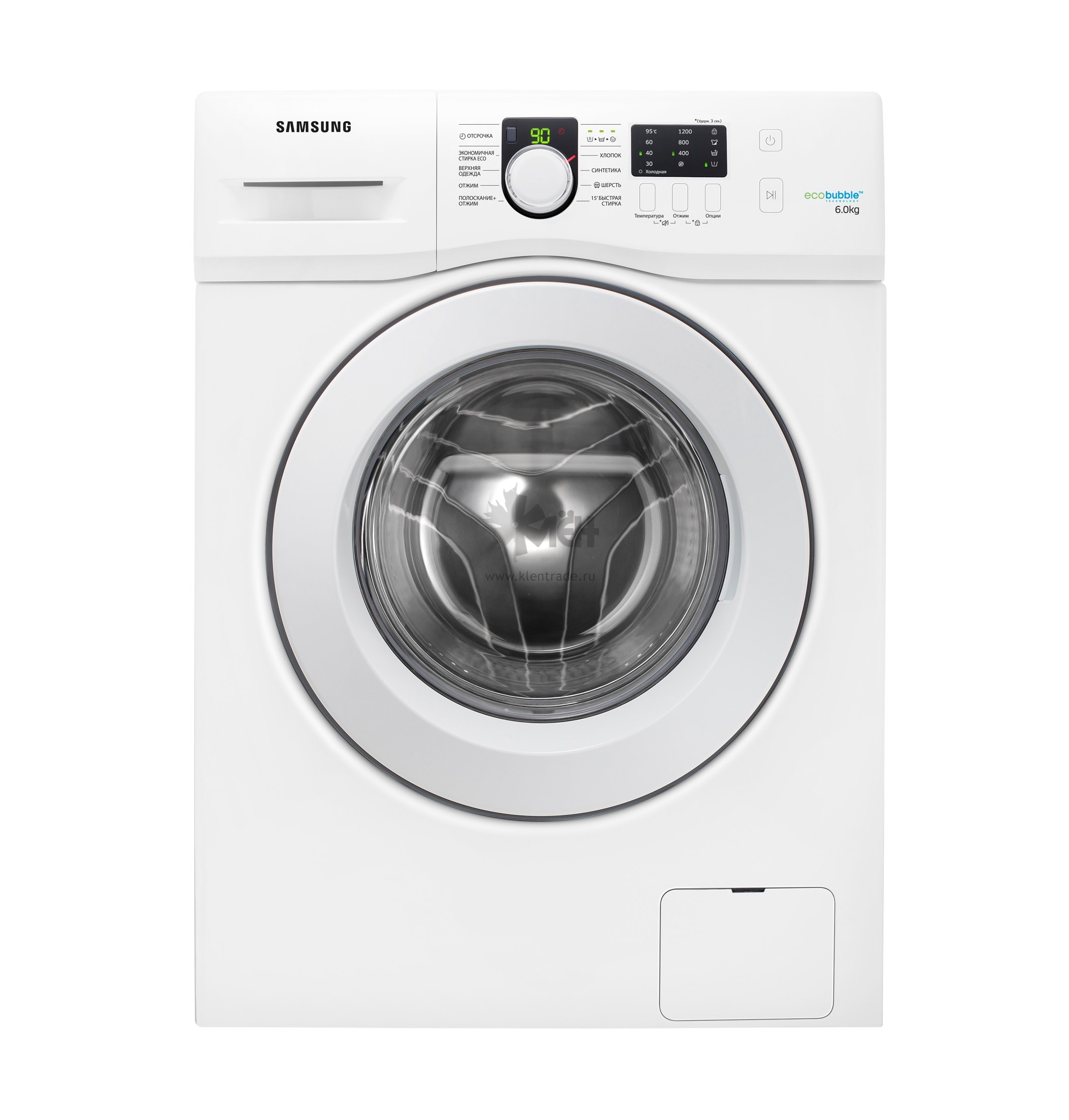 Стиральная машина SAMSUNG WF 60F1R0E2W обладает фронтальной загрузкой и способна вместить до 6 кг белья за один цикл работы, класс эффективности стирки данной модели A.