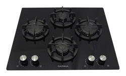 Цвет черный Размеры Ширина59 см Глубина51 см Высота10 см Независимая встраиваемая газовая панель на стекле, с диагональным расположением горелок, с розжигом, с газ-контролем, с фиксированным положением ручек крана малое пламя, с чугунной индивидуальной решеткой. Поворотные ручки крана расположены спереди.