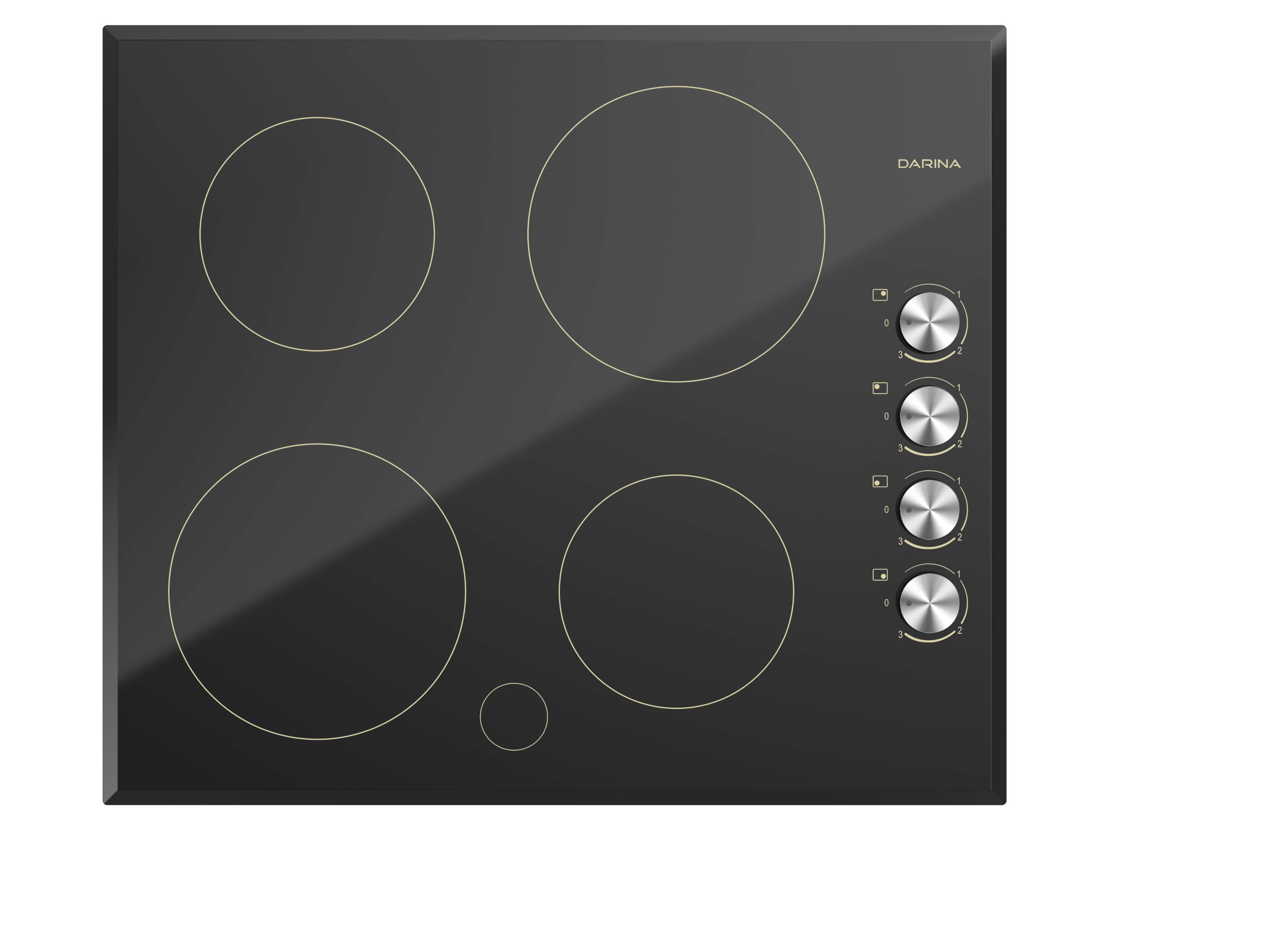 Цвет черный Размеры Ширина58,5 см Глубина50,5 см Высота5,5 см Независимая встраиваемая электрическая стеклокерамическая панель, с классическим расположением конфорок, с энергетическим переключателем мощности. Поворотные ручки расположены сбоку.
