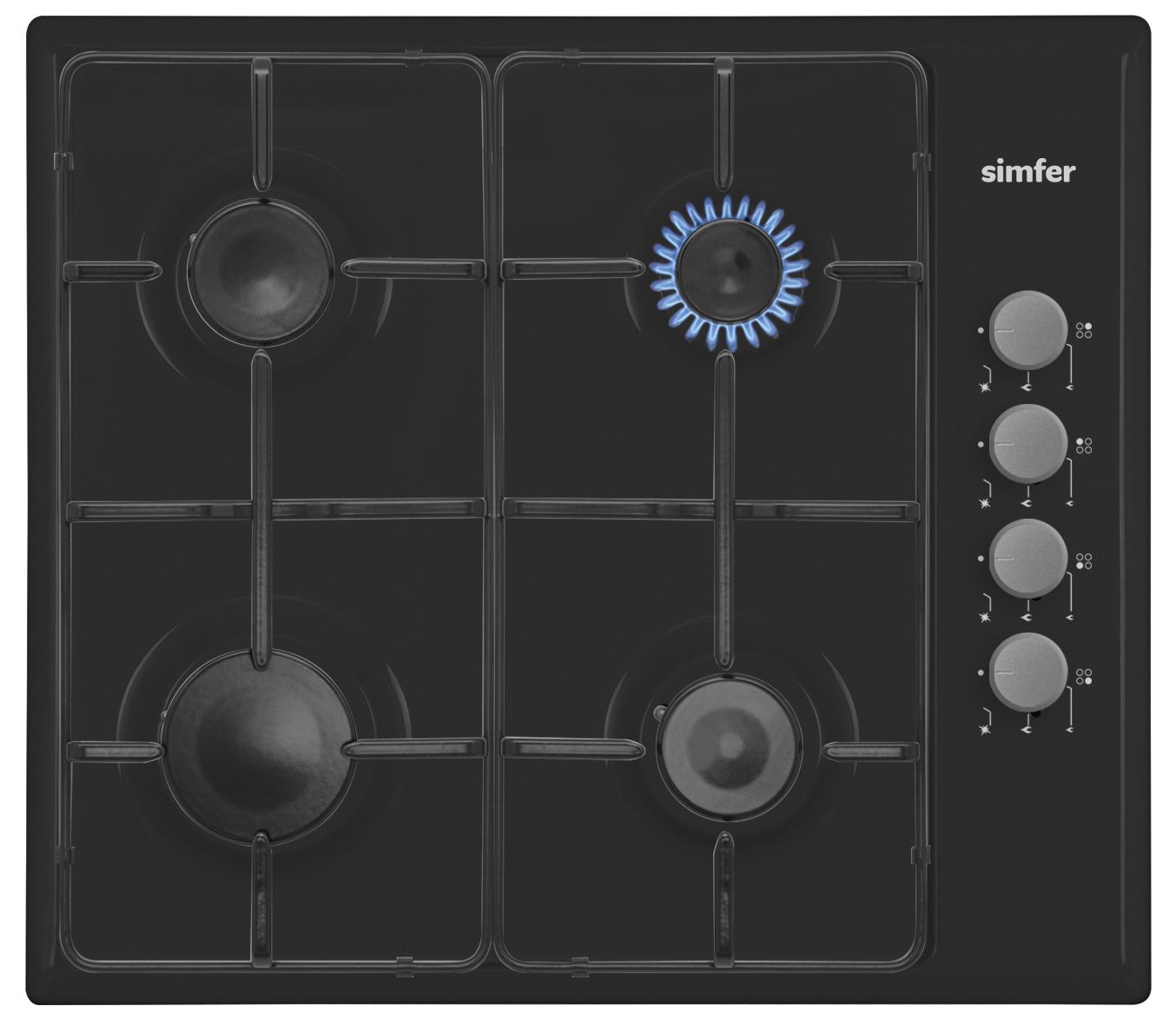 Независимая газовая варочная поверхность 60 см. Кол-во конфорок 4 1 х конфорка повышенной мощности 3000 Вт. 2 х стандартные конфорки 1750 Вт. 1 x экономичная конфорка 1000 Вт. Автоматический розжиг Боковая панель управления Комплектация: рештки, жиклры для баллонного газа Цвет черный