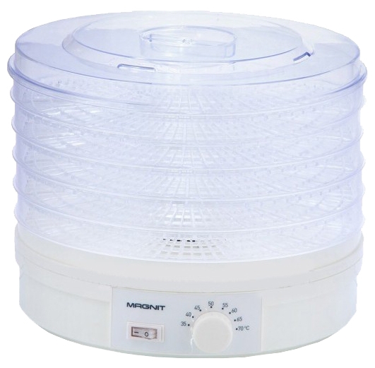 Мощность: 400 Вт. Максимальный вес продуктов: до 5 кг. Количество секций для сушки: 5. Температура: - от 35 С до 70 С. Может использоваться для сушки: - фруктов, - овощей, - трав, - корнеплодов, - грибов и ягод, - рыбы, - мяса. Прозрачная крышка позволяет наблюдать за процессом. Усовершенствованный поддон с возможностью извлечения срединного уровня, что позволяет загружать продукты большего размера.