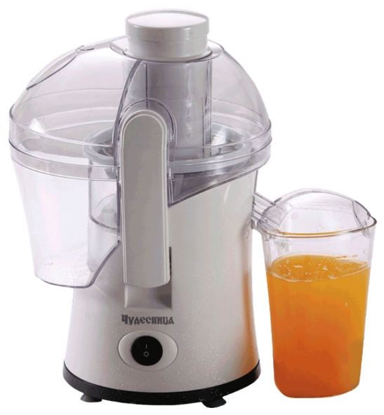 центробежная соковыжималка мощность 500 Вт подача сока сразу в стакан автоматический выброс мякоти корпус из пластика возможность загрузки целых плодов