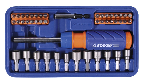 Набор отверток STAYER Profi 46предм., реверсивные с торцевыми головками и битами 25453