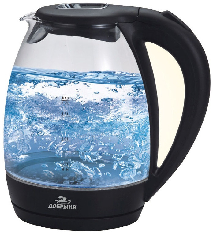 Чайник ДОБРЫНЯ DO-1220 (1,7л.) стекло , черн