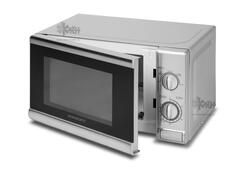 Микроволновая печь с ручным управлением цвета нержавеющей стали и строгой формы понравится хозяевам небольшого офиса или подойдет для маленького кафе. Поверхности как внутри, так и снаружи легко моются!