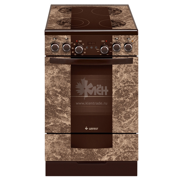 Коричневая стильная электрическая плита Gefest 5560-03 0001 с рисунком "Камень" оснащена 4-мя электрическими конфорками. Две конфорки в данной модели являются двухконтурными. Поверхность электрической плиты покрыта стеклокерамикой, благодаря этому за прибором очень легко ухаживать. Плита имеет следующие габариты: