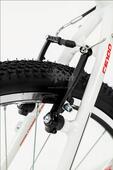 На велосипеде установлены прочные колеса диаметром 26 дюймов, усиленные двойным ободом, и оснащенные цепкими и накатистыми покрышками. Ободные тормоза V-Brake просты и легки в обслуживании. Белая рама с яркими красными вставками выглядит современно и стильно.