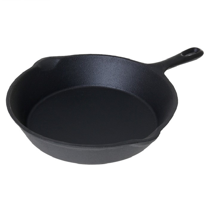 Сковорода диаметром 25 см с двумя сливами, цельночугунная, подходит для использования на всех видах плит, включая индукцию.