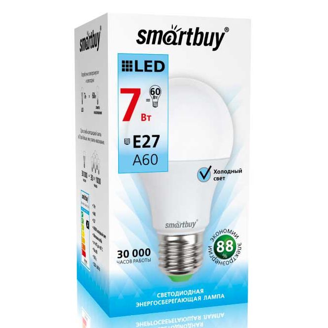 Лампа светодиодная Smartbuy LED А60-7w- E27 4000K