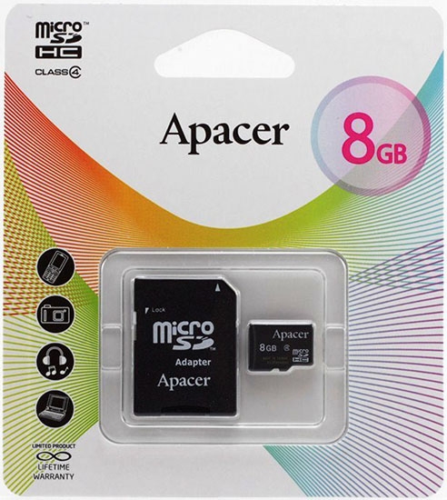 Карта памяти micro SD 8Gb Apacer Class10 с адаптером