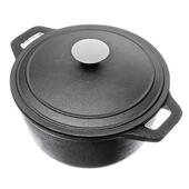 Кастрюля 3,8 л с двумя ручками, цельночугунная, укомплектована чугунной крышкой с ручкой из нержавеющей стали, подходит для использования на всех видах плит, включая индукцию.