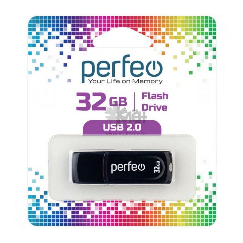 USB накопитель Perfeo с колпачком, модель C09 объемом памяти 32GB, черного цвета имеет компактный размер.