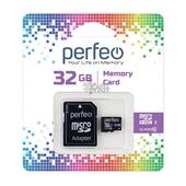 Карта памяти micro SD 32Gb Perfeo Class 10 с адаптером