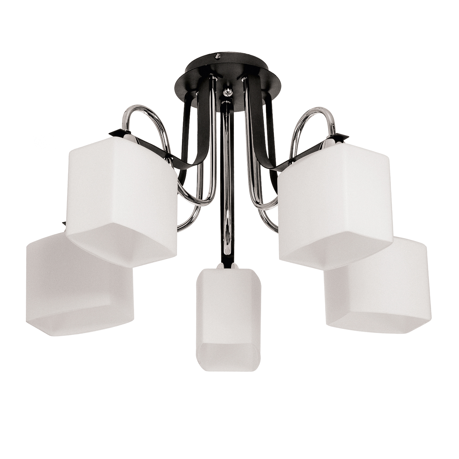 Количество ламп: 5 шт. Цоколь: E27 Макс. мощность одной лампы: 60 W Лампы в комплекте: Нет Светодиодная подсветка: Нет Материал и цвет Цвет каркаса: Коричневый / Хром Цвет плафона: Белый Материал каркаса: Металл Материал плафона: Стекло Опции Количество режимов: 2 Размеры светильника Длина (ось Z): 60 см Ширина (ось X): 60 см Высота (ось Y): 26