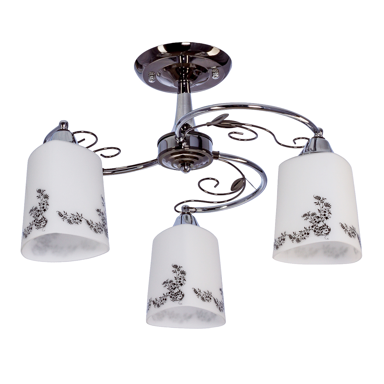Количество ламп: 3 шт. Цоколь: E27 Макс. мощность одной лампы: 60 W Лампы в комплекте: Нет Светодиодная подсветка: Нет Материал и цвет Цвет каркаса: Хром / Черный Цвет плафона: Белый Материал каркаса: Металл Материал плафона: Стекло Размеры светильника Длина (ось Z): 54 см Ширина (ось X): 54 см Высота (ось Y): 33 см