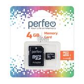 Карта памяти micro SD 4Gb Perfeo Class 10 economy series с адаптером
