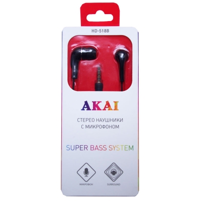 Наушники стерео AKAI HD-518B черные внутриканальные