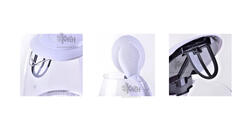Модель имеет дополнительный элемент системы безопасности, который расположен в виде кнопке на корпусе. Данная кнопка позволяет открывать крышку чайника не прикасаясь к ней, что позволяет избежать нежелательного соприкосновения с паром.