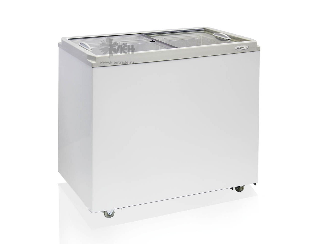 Морозильный ларь Бирюса 260Z объемом 240 литров с двумя стеклянными крышками, обеспечивает демонстрацию размещенного внутри товара, обладая большей площадью экспозиции и удобной для покупателя витриной.