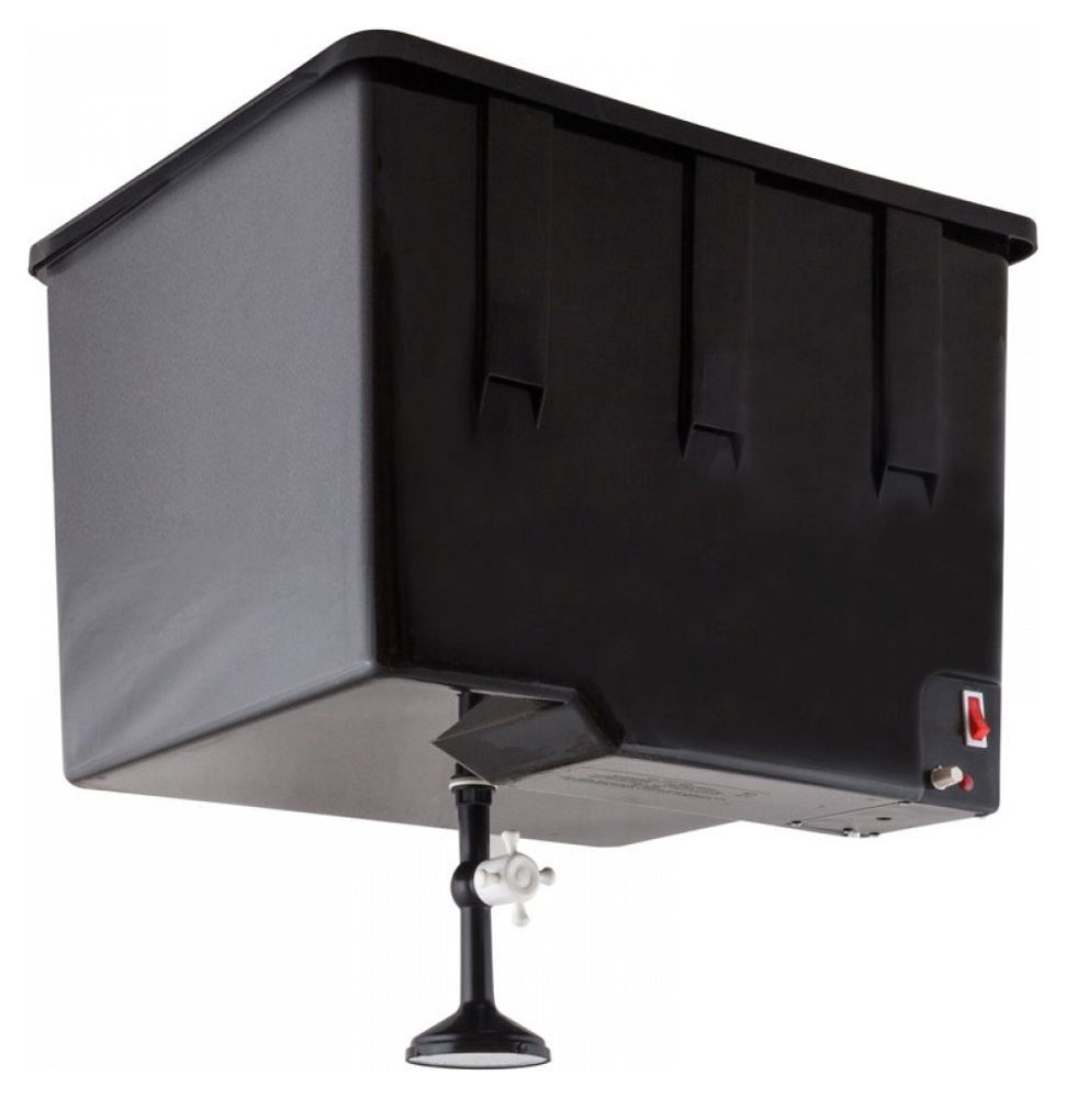 Корпус и крышка бака выполнены из черного пластика, что позволяет воде нагреваться от солнечных лучей.
