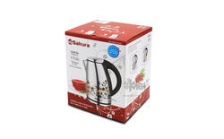 Электрический чайник SAKURA SA-2118SС сделан из нержавеющей стали. Чайник привлекает к себе внимание во время своей работы. На корпусе нанесен терморисунок, он меняет цвет при нагревании. Матовый с цветами, притягательный вид его завораживает и поднимает настроение своему обладателю.