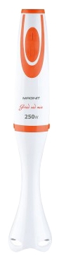 Мощность: 250 Вт. Количество скоростей: 2. Материал лезвий: нержавеющая сталь. Материал погружной части: ударопрочный пластик. Материал корпуса: высокопрочный пластик. Объем мерного стакана для смешивания: 0,5 л. Материал стакана: высокопрочный прозрачный пластик. Съемная насадка для измельчения и смешивания. Блендер. В комплекте: - блендер, - стакан для смешивания, Функции: смешивание, измельчение, перемешивание Пониженный уровень шума.