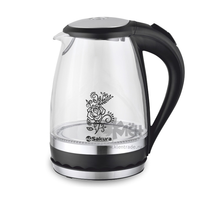 Корпус электрического чайника SAKURA SA-2712BK выполнен из термостойкого стекла. Несомненно привлекает к себе внимание, благодаря оригинальному исполнению, дизайн с цветочным рисунком выглядит безупречно, даже в выключенном состоянии.