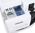 Стиральная машина SAMSUNG WF 60F1R2E2W обладает фронтальной загрузкой и способна вместить до 6 кг белья за один цикл работы, класс эффективности стирки данной модели A.