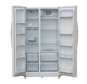 Холодильник SHIVAKI SBS-615DNFW side-by-side, что означает бок о бок и от прочих моделей отличается параллельным расположением камер по вертикали. Такие холодильники относятся к американскому стандарту за счет своего происхождения. Холодильник имеет следующие габариты: