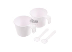К основному устройству предлагается набор из двух стаканчиков и дух ложек для приготовления горячих напитков.