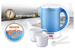 Брэнд CENTEK предлагает модель стильного дорожного электрического чайника. Компактный чайник CENTEK CT-0054 из термостойкого пластика поместится в любой дорожной сумке или чемодане. Возьмите прибор в поездку и приготовьте горячие напитки для вас и вашей половинки в холодный вечер!