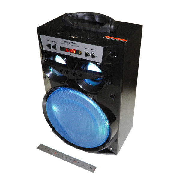 Колонки портативные цветомузыка MS-170BT Grey (bluetooth, FM, USB, TF) 270*135*180мм.