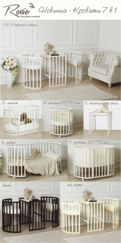 Кроватка детская 7в1 Nobelev (круг,овал,манеж,диван,пелен.столик,2кресла) шоколад
