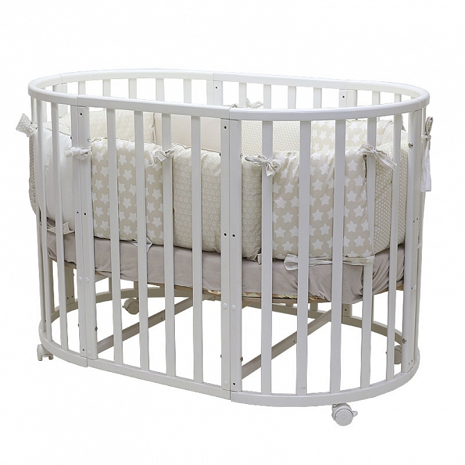 Кроватка детская овальная Ариша 125*75 белая колес 54103
