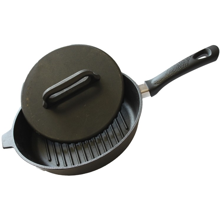 Сковорода-гриль чугунная d28см. Камская Г8063 бакелит. ручка, чугунн. крышка