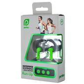 Наушники с мик. Perfeo RUN-UP внутриканальные/спортивные БЕСПРОВОДНЫЕ (Bluetooth) черный/зеленый