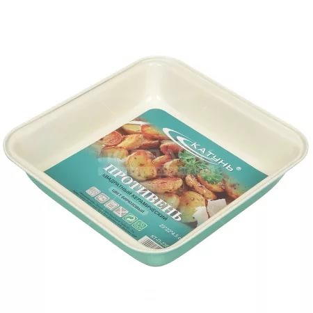 Противень д/запекания керамич.покр. 23*22*4,5см, квадратн., бирюза Катунь КТ-П-23Б
