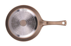 Сковорода из литого алюминия тяжелее, имеет утолщённые стенки и дно. Дно снабжается антидеформационным стальным диском, который усиливает дно посуды, а также делает возможным использовать её для индукционных плит. Диамер данной модели 26см.