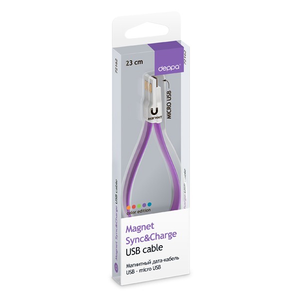 Дата-кабель USB-MicroUSB Deppa фиолетовый/магнит/плоский 72162