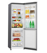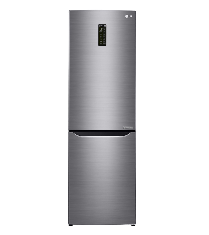 Стильный серебристый двухкамерный холодильник LG GA-B429 SMQZ с морозильником, расположенным в нижней части. Холодильник имеет следующие габариты: