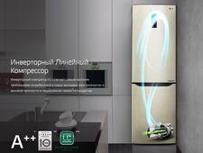 Стильный бежевый двухкамерный холодильник LG GA-B429 SEQZ с морозильником, расположенным в нижней части. Холодильник имеет следующие габариты: