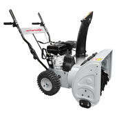 Двухступенчатая система выброса, снег подается под кожух шнеком и затем выбрасывается крыльчаткой через раструб.
