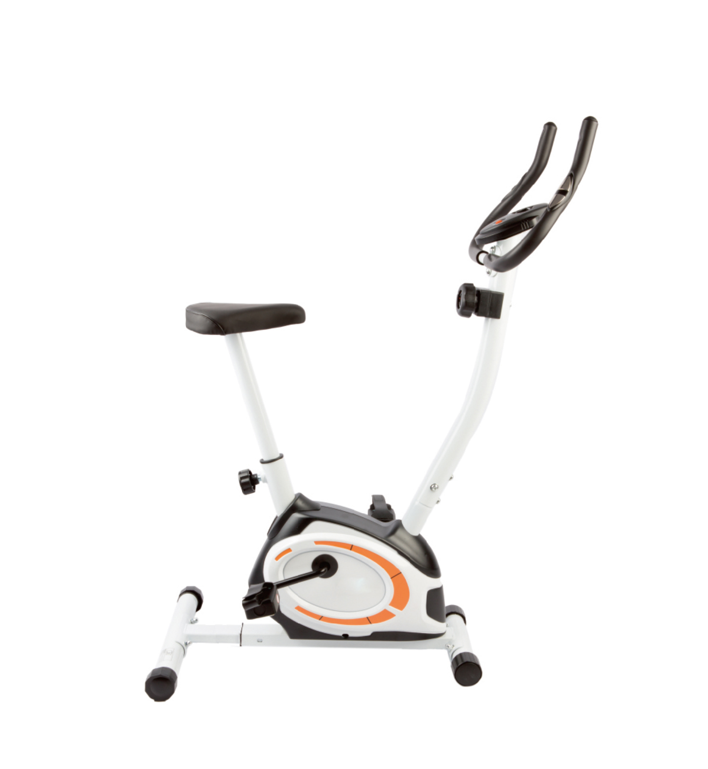 Маховик велотренажера магнитный 3 кг. На руле считывающие датчики. Компьютер LCD 5 функций: время, скорость, расстояние, калории. Пульс. Режим сканирования тренировки. Комфортное седло, регулируется по вертикали, педали с фиксирующими ремнями, одно информационное окно компьютера.
