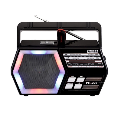 Диапазоны: УКВ/СВ/КВ Частоты для каждого диапазона: УКВ (64-108МГц) / СВ (530-1600КГц) / КВ (5,9-18,0 МГц) т Кол-во динамиков: 1шт, монозвучание Мощность динамиков: 76MM/4/3W Питание: От сети: 220В Батарейки: R20*2шт, не в комплекте Аккумулятор: нет Размер: 198x74x106мм Воспроизведение USB: есть Воспроизведение с microSD (TF): есть AUX: есть Разъем для внешнего питания: есть, 4,5VТелескопическая антенна: есть Функция дискосвета: есть