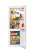 Двухкамерный холодильник BEKO RCNK 270K20W в белом корпусе строгой формы. Габариты устройства:
