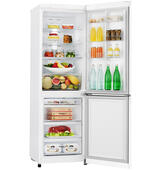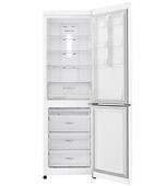 Белый вместительный двухкамерный холодильник LG GA-B429 SQQZ с морозильником, расположенным в нижней части. Холодильник имеет следующие габариты: